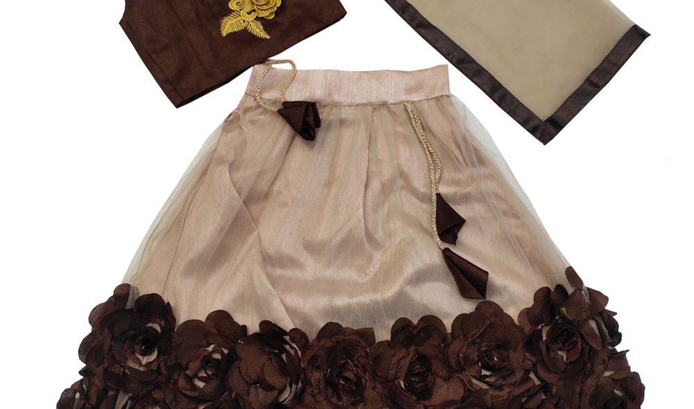 Stylish mustard lehenga choli for girls with embroidered pattern and elegant finish.